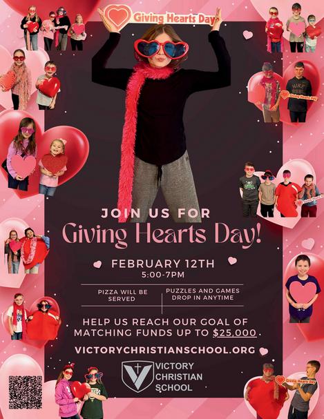 Mail or bring a check to the school. Checks must be dated February 12th and received on or before February 12th to qualify for matching funds. Please make checks payable to Victory Christian School